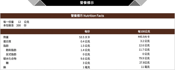 艾多美 阿拉比卡三合一即溶咖啡 營養標示